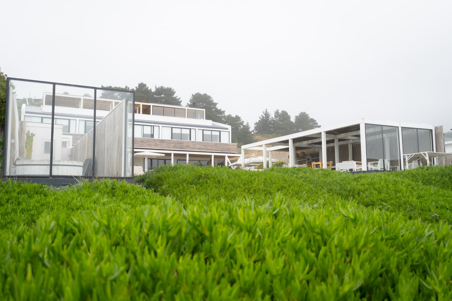 El hotel integra una oferta integral de servicios, incluyendo un restaurante con una propuesta de cocina ecléctica, sala de reuniones y zona de co-work ideal para viajeros que combinan descanso y productividad. Su área de spa —con tinajas, sauna y sala de masajes— invita a reconectar cuerpo y mente, mientras que los espacios comunes están diseñados para el relajo y la contemplación del entorno costero.